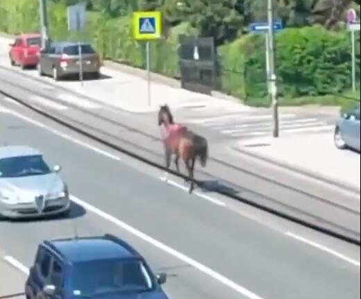 Naime, kako je objavljeno na instagram stranici serbialive_beograd konj se oteo jutros na treningu i bežao kroz pomenutu ulicu sve dok ga nisu uhvatili.
