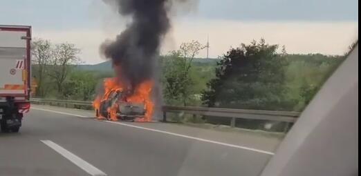 Na izlazu iz Beograda, na auto-putu kod Bubanj Potoka zapalio se automobil.