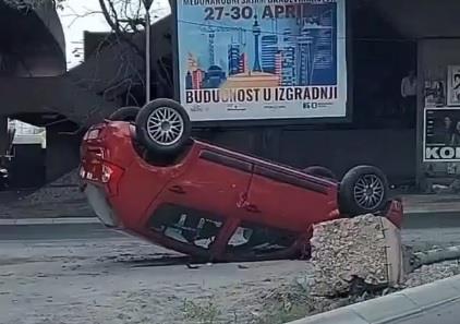 Na društvenim mrežama osvanuo je nesvakidašnji prizor sa beogradskih ulica, usnimljen je automobil koji se prevrnuo na krov kod Mostarske petlje, i to na razdelnom ostrvu.