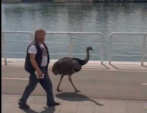 "Ptičica" gotovo u visini svog vlasnika i najboljeg druga mirno je šetala kejom uživajući u lepom danu i plavetnilu Save.
