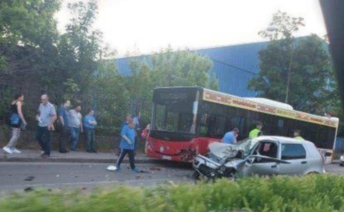 Autobus se kretao ka naselju, a iz suprotnog smera automobil "Punto" je prešao preko ostrva i udario u autobus.