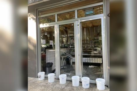Na slikama možemo videti da je staklo na vratima potpuno slomljeno i delovi su razbacani unutar i izvan pekare.