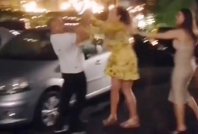 Naime, na snimku se vidi kako devojka, vidno uznemirena i ljuta, pobesnelo udara po muškarcu koji uplašeno ide unazad. Pretpostavlja se da je reč o taksisti s obzirom na to da se on sklanja ka prakiranom taksi vozilu.