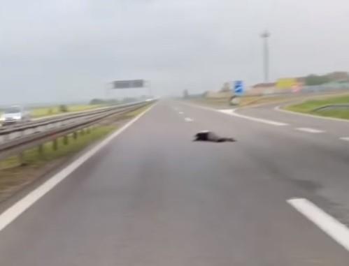 Čitav saobraćaj je stao, brojni šleperi, putnička vozila..., na nekoliko desetina metara od mesta gde je nesrećni čovek ležao.