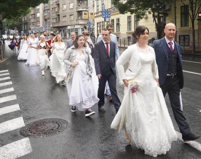 BEOGRAD - U Beogradu, na platou ispred Starog dvora, danas je organizovano 23. po redu kolektivno venčanje a brak su sklopila 26 para.