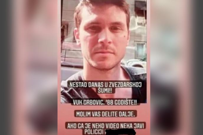 Na društvenoj mreži instagram objavljeno je da je danas nestao Vuk Grbović (34) koji je, kako se navodi, poslednji put viđen upravo u Zvezdarskoj šumi.