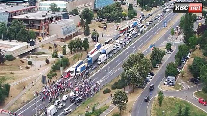 Nekoliko stotina radnika kragujevačke fabrike automobila Fijat blokiralo je danas popodne deo auto-puta kroz Beograd, kod Sava centra, i izazvalo totalni kolaps u saobraćaju.