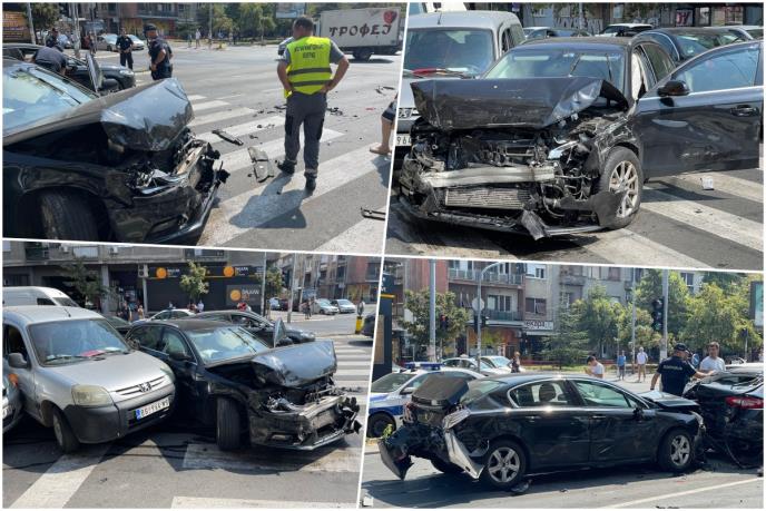 LANČANI SUDAR U CENTRU BEOGRADA: 4 automobila slupana, delovi rasuti po putu (FOTO)