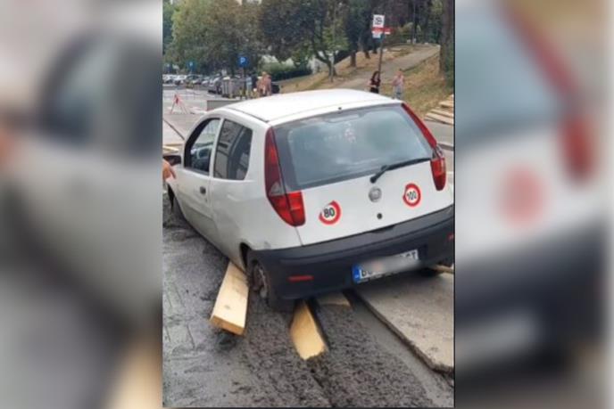 Jedan vozač je odlučio da krene putem koji je u izgradnji pa je njegovo vozilo završilo u svežem betonu!