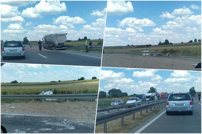 Nesreća se dogodila kad je kamion "iveko" koji je prevozio pesak naleteo na parkirani teretnjak u zaustavnoj traci.