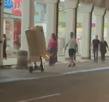 Kako je navedeno, ovaj trotinetista sa kutijom prozujao je Glavnom ulicom u Zemunu i vozio je trotoarom naočigled zgranutih prolaznika.