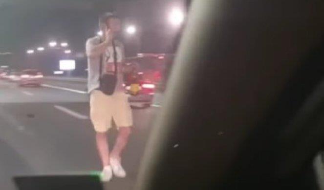 Nesvakidašnja scena odigrala se večeras u Beogradu, a koko se može videti na snimku objavljenom na društvenim mrežama, vozači su zabeležili mladića u šetnji posred puta na Autokomandi.