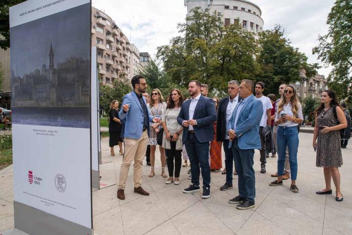 „Gradska opština Stari grad želi da na najbolji mogući način građanima Beograda predstavi umetnička dela koja se nalaze u fundusu Narodne biblioteke Srbije. Fotografije dela naših najvećih umetnika danas su izložene u javnom prostoru kao najava velike izložbe umetničke zbirke Narodne biblioteke Srbije, koja će biti otvorena u Galeriji SANU u junu sledeće godine. Saradnja Gradske opštine Stari grad i Narodne biblioteke Srbije od velikog je značaja zbog buduće izgradnje memorijalnog centra na mestu nekadašnje Narodne biblioteke na Kosančićevom vencu, koja je stradala u bombardovanju Beograda 1941. godine kada je u požaru izgorelo preko pet stotina hiljada knjiga – rekao je na otvaranju predsednik opštine Stari grad Radoslav Marjanović.