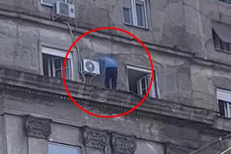ZBOG OVOG SNIMKA OZNOJIĆE VAM SE DLANOVI: Deda u centru Beograda snimljen kako hoda po simsu, svi se pitaju ŠTA RADI OVAJ ČOVEK?!