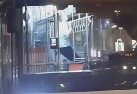 Na snimku se vidi kako on na okretnici u praznom autobusu radi zgibove.