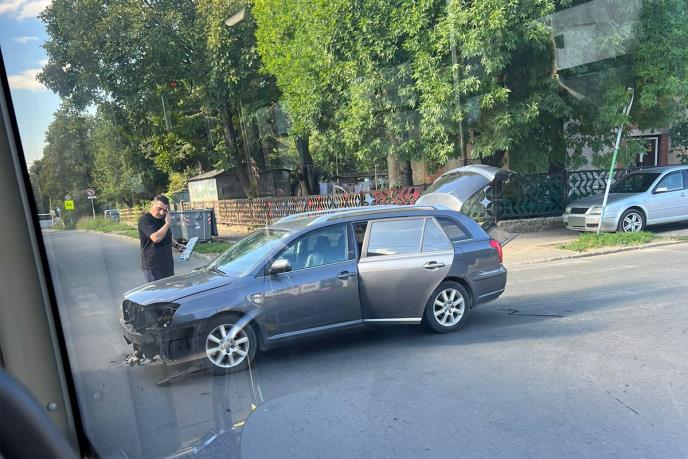 Predni deo sivog karavana potpuno je olupan, branika nema a ispao mu je i levi far.
