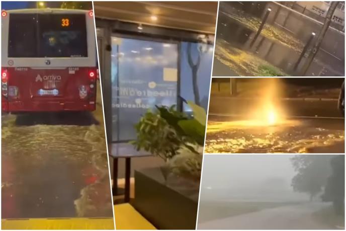 Kako se moglo videti na snimcima koji su objavljeni na društvenim mrežama, u pojedinim delovima grada kiša je napravila poplave, pa se tako jedna pumpa našla maltene u "bazenu".