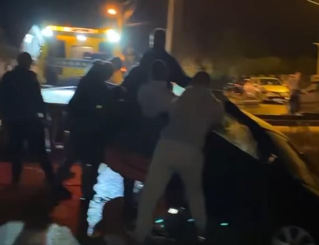 Auto vršačkih tablica upao je u jarak pun vode a onda su u pomoć pritekle sve okolne komšije izvlačeći limuzinu na o-ruk!