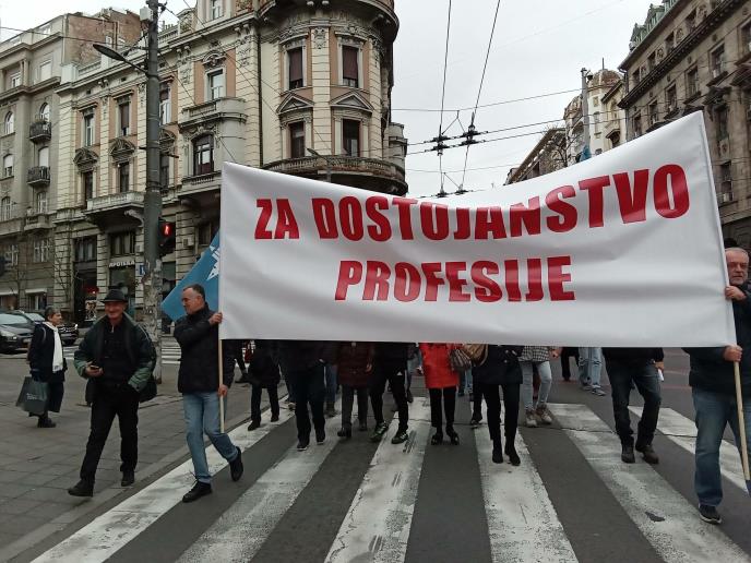 Prosvetari su se u protestnoj šetnji uputili ka Skupštini Srbije gde su svoje zahteve predali Odboru za prosvetu. Najavili su da će se zatim uputiti ka zgradi Ministarstva prosvete da zahteve predaju i ministru. Prema najavi očekuje se obraćanje tri koleginice koje su bile žrtve nasilja, od kojih je jedna napadnuta nožem.