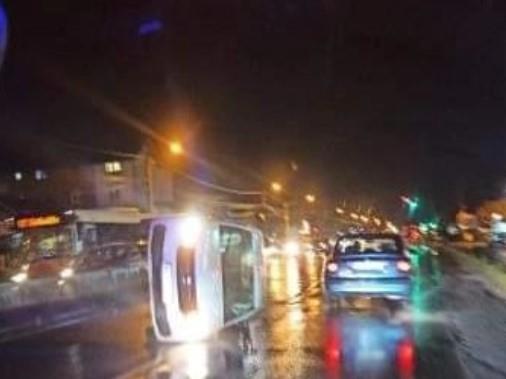 Težak udes dogodio se večeras na Zrenjaninskom putu, kod Metroa. Jedan auto završio je prevrnut na krov.