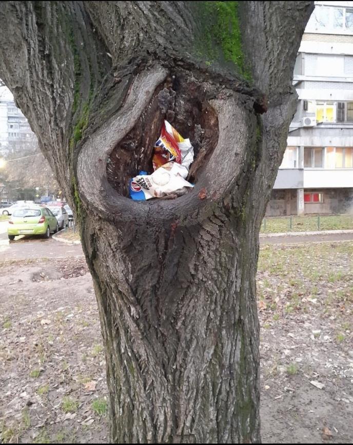 Naime, na društvenoj mreži Instagram na stranici Serbia live Beograd objavljena je fotografija drveta koje u sebi ima rupu koja nekima služi kao kanta.