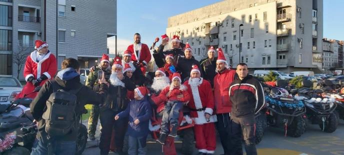 Deda Mrazovi na kvadovima danas su obradovali i usrećili mališane specijalne škole za decu obolelu od cerebralne paralize „Miodrag Matić“, Doma u Sremčici, Instituta za majku i dete, Onkologije, Svratišta na Novom Beogradu, decu sa Kosova i Metohije....