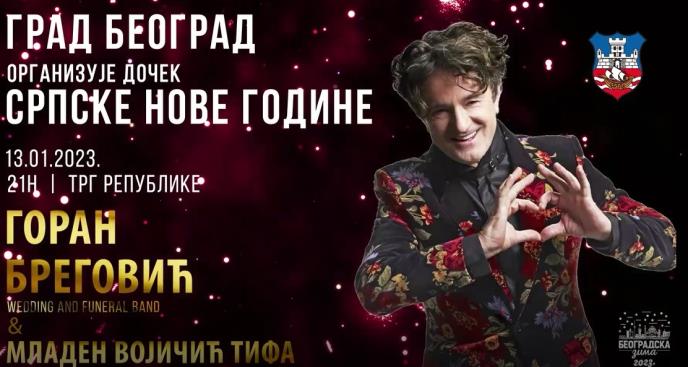 U okviru manifestacije „Beogradska zima”, Grad Beograd organizuje 13. januara od 21 čas doček Srpske nove godine, uz besplatni koncert na kojem nastupaju Goran Bregović i Mladen Vojičić Tifa na Trgu republike.