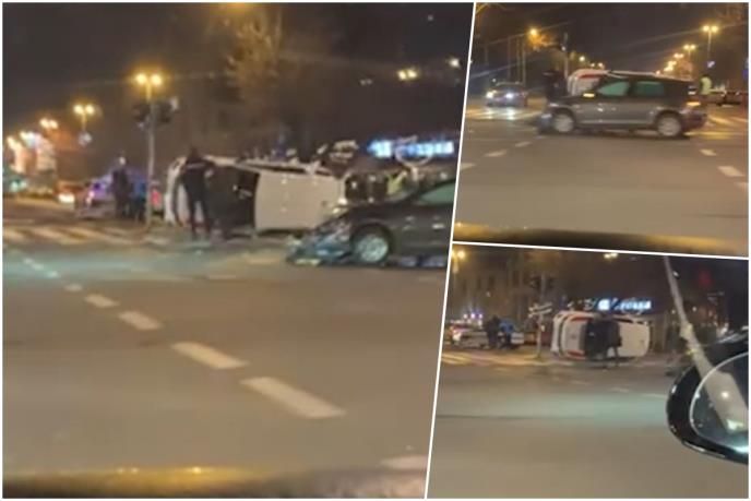 Posle sudara vozila "Oko sokolovo" i još dva putnička automobila, "Oko sokolovo" se prevrnulo i završilo na boku.