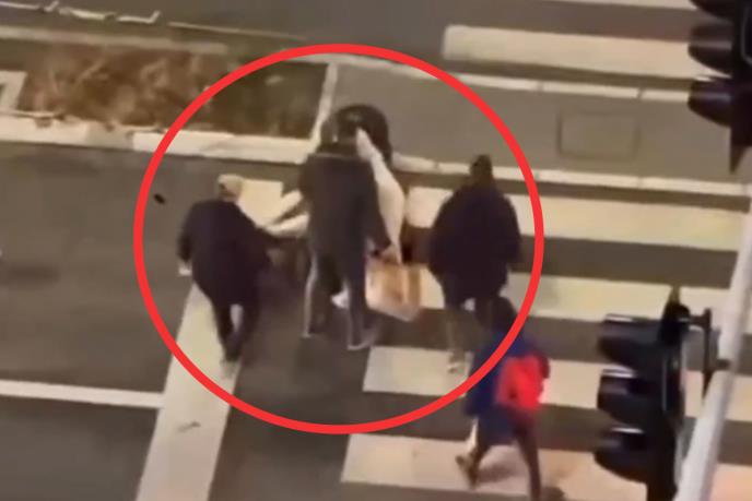 Na snimku se vidi tučamladića koji je na semaforu istrčao iz crvenog automobila i drugog koji je najverovatnije prelazio preko pešačkog.