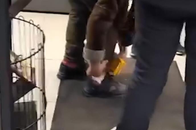 Na prvom se vidi da je već izašao na ulicu ispred radnje a za njim i radnica marketa koja je potom rekla da će zvati policiju posle čega se on vratio unutra i počeo iz farmerki da vadi čokolade.