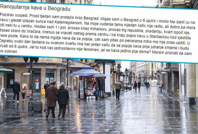 Mladić iz Hrvatske bio je iznenađen kada je došao u Beograd i u ranim jutarnjim časovima nije mogao da nađe mesto gde da popije kafu, što ga je jako začudilo,a o tome je pisao i na društvenim mrežama.