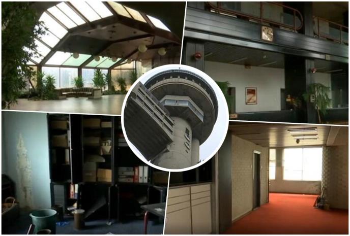 Većina spratova sablasno je pusta. U jednoj od kancelarija su i kofe u koje kaplje voda sa plafona, a restoran na vrhu zgrade nikad se nije zavrteo