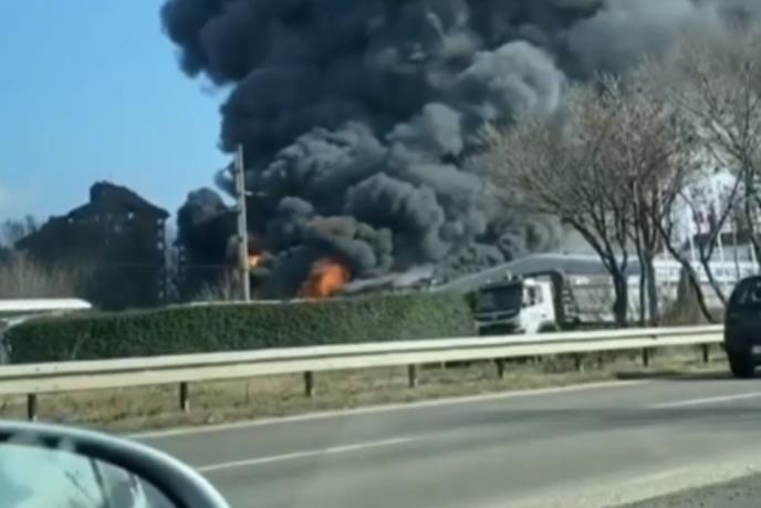 Kako je objavljeno na Instagram stranici 192_rs, gori servis i prodavnica guma.