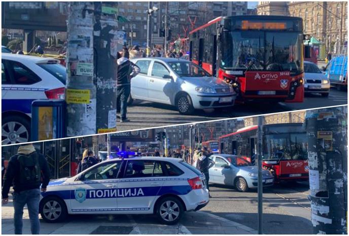 U centru Beograda dogodila se jutros saobraćajna nezgoda kada su se sudarili autobus i putnički automobil kod Vukovog spomenika.