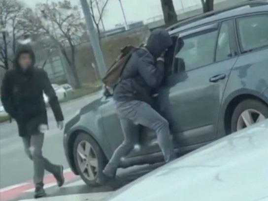 Na društvenim mrežama objavljen je snimak jednog mladića i vozača putničkog automobila koji se nalaze u klinču nasred pešačkog prelaza.