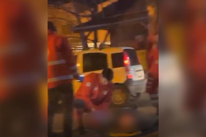 Na snimku se vidi i da ekipa Hitne pomoći pokušava da pomogne čoveku.