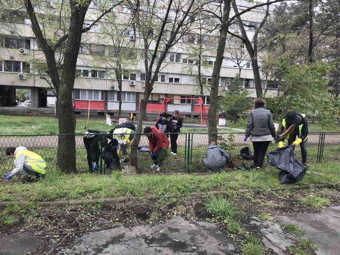 Učenici i profesori Desete gimnazije "Mihajlo Pupin“ prvi dan svog prolećnog raspusta započeli su akcijom čišćenja školskog dvorišta i prostora oko škole.