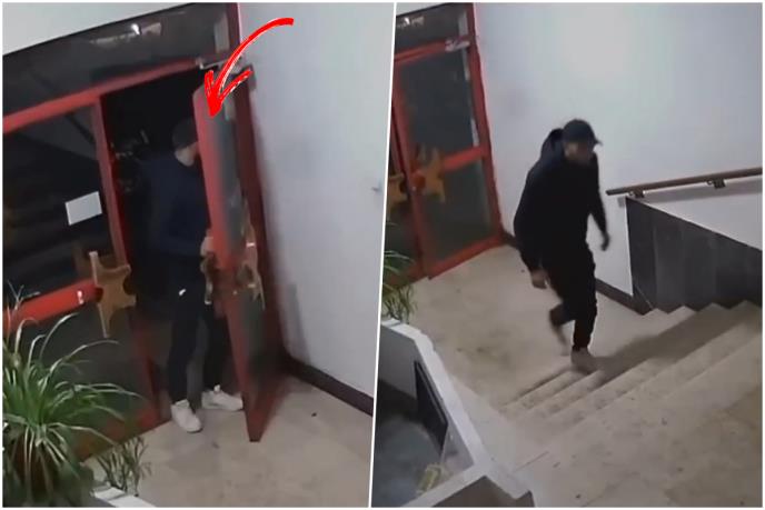 Kako se dalje navodi u objavi, on je 15 minuta pre ulaska stajao na ulazu u zgradu duže od 4 minuta, probavajući šifre s namerom da otvori vrata, a tada je pored kačketa na glavi imao i kapuljaču.