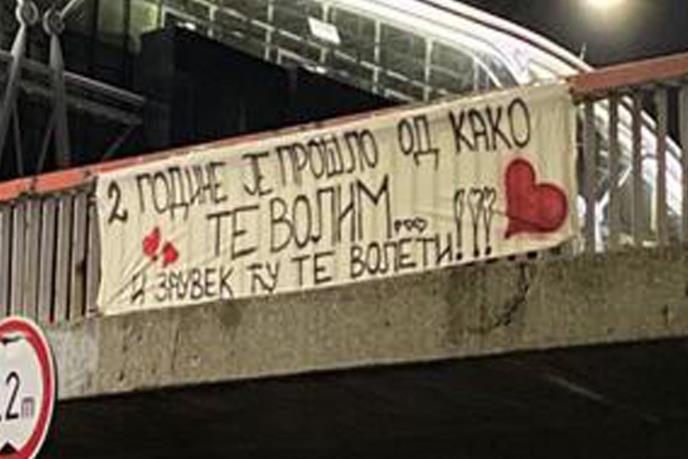 - Dve godine je prošlo od kako te volim... I zauvek ću te voleti! - piše na jednom transparentu.
