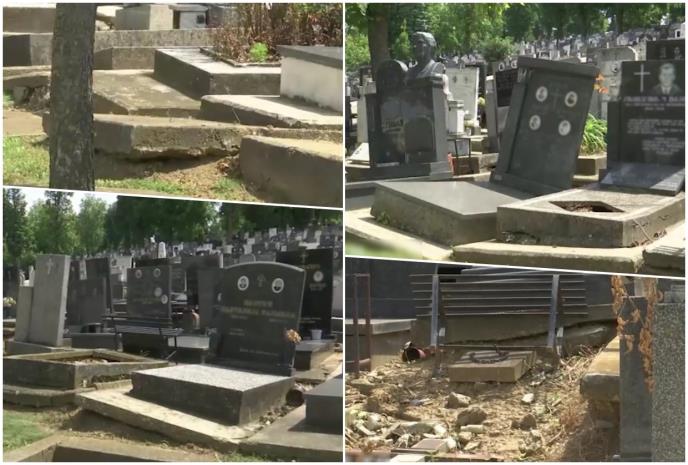 Strmi teren, starost groblja, neredovno održavanje, nerešena imovinsko-pravna pitanja, prema rečima nadležnih, glavni su razlozi što na Centralnom groblju mnogi spomenici klize.