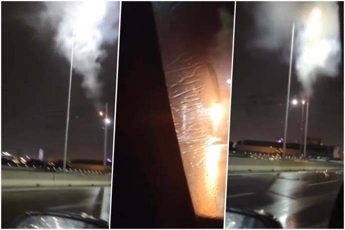 Nesvakidšnja scena viđena je na mostu preko Ade. Snažan udar groma kao da je zapalio banderu, objavljeno je na Instagramu.