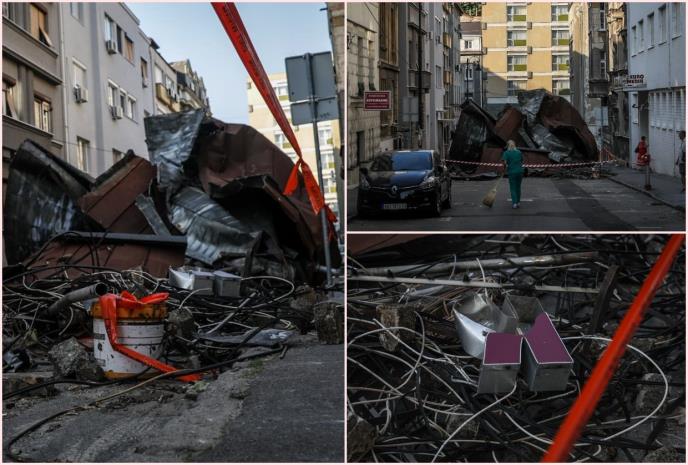 - Juče su dolazili radnici koji su pokušali dizalicom da sklone krov, ali je sajla pukla. Saobraćaj je i dalje obustavljen, na samom ulazu u ulicu nema znakova. Srećom, nema teže povređenih, a ogromna konstrukcija i dalje stoji nasred ulice - završila je uključenje Gojković.