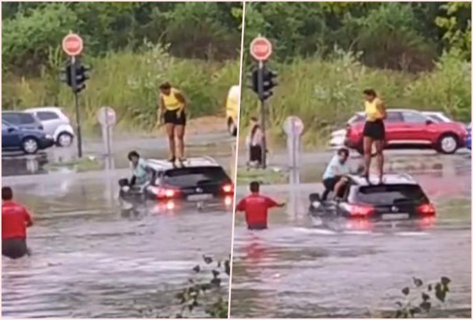 "VOZAČ BIO U AUTU, LEDENA VODA GA ZAROBILA" Devojke se popele NA KROV, a onda se pojavio ON! Ovo je Stevan o kom priča Srbija FOTO