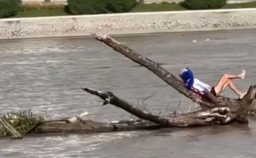 PLOVI NA DRVETU I SUNČA SE! Nesvakidašnja scena na Savi u Beogradu: Pogledajte kako ovaj čovek uživa (VIDEO)