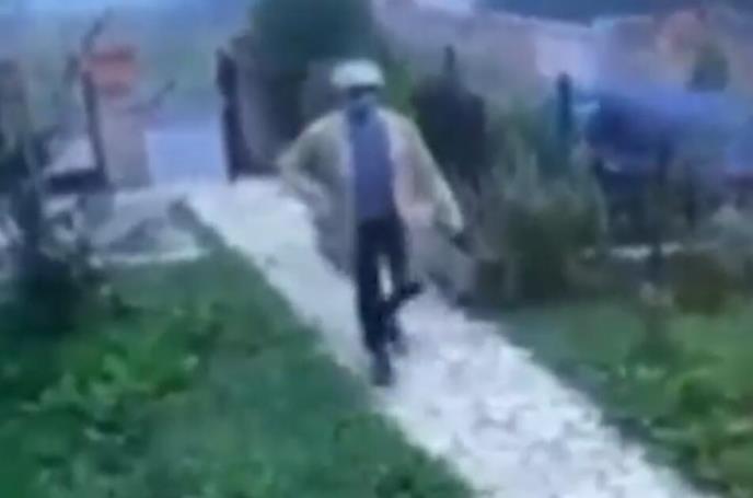 Na snimku vidi se muška osoba koja ulazi u tuđe dvorište u cik zore. On na glavi ima nešto poput kape i nosi plavi džemper i nekakav žuti ili bež mantil.