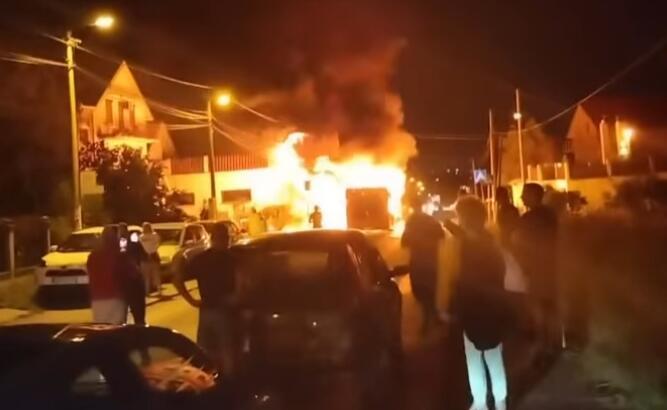 Kako se vidi na snimku, vatra guta vozilo koje stoji nasred puta, dok meštani pokušavaju da pomognu.