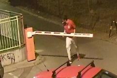 Ovaj divljak u crvenoj majici je ničim izazvan došao automobilom do rampe, izašao i zatim je hladnokrvno demolirao! Onda se udaljio do saučesnika koji ga je čekao na uglu.