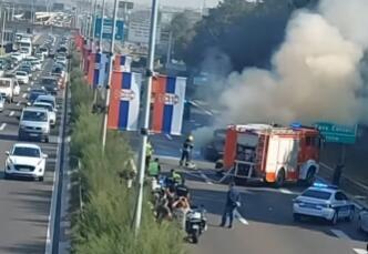 Podsetimo, automobil marke "Porše" zapalio se danas na auto-putu kod isključenja za Sava Centar.