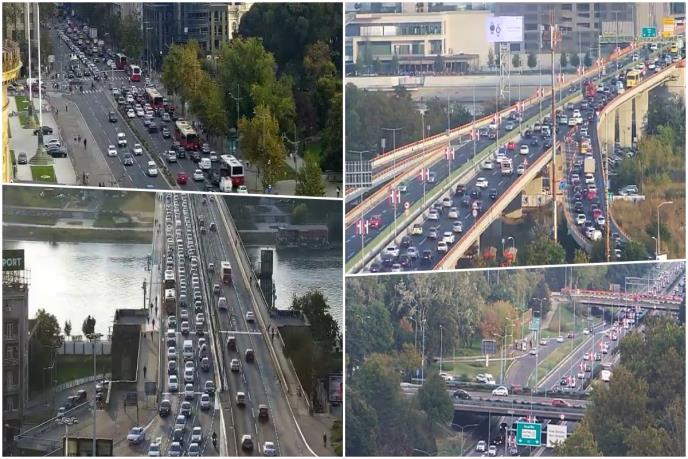 Za razliku od ovih deonica Brankov most je iole i prohodan, ali samo u smeru ka Novom Beogradu. Saobraćaj je takođe zakrčen kod Ušća na Novom Beogradu.Od mostova zakrčen je i Pančevački mosta u smeru ka Beogradu, a velika je gužva i na Zrenjaninskom putu kod groblja Zbeg u oba smera!