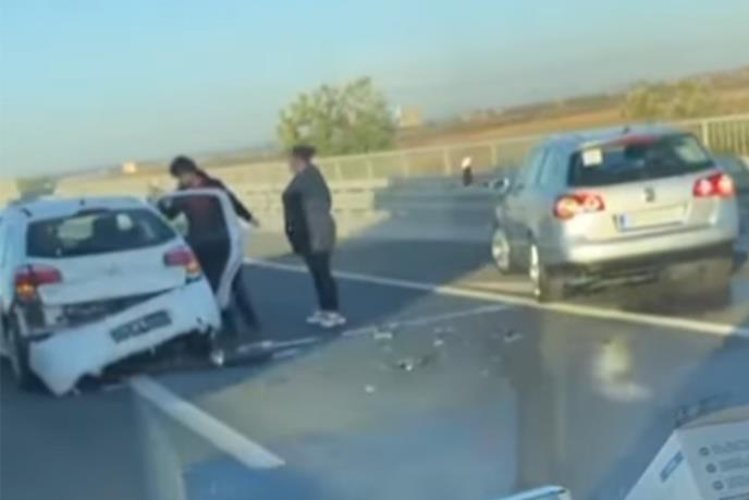 Automobili koji su učestvovali u sudaru zauzeli su dve trake pa ostatak saobraćaja mili krajnjom levom.